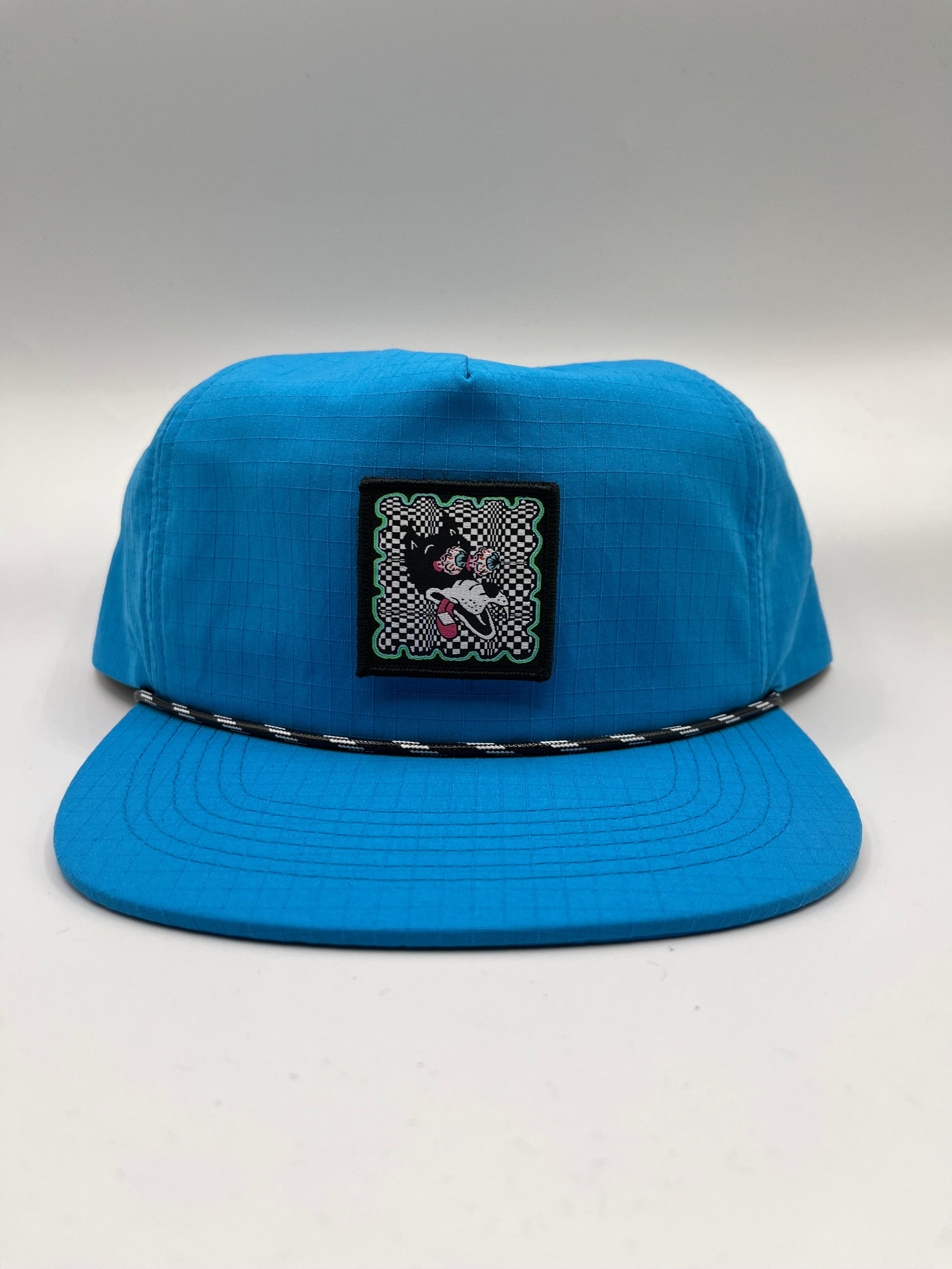 checkerboard dire wolf patch nylon rope hat blue