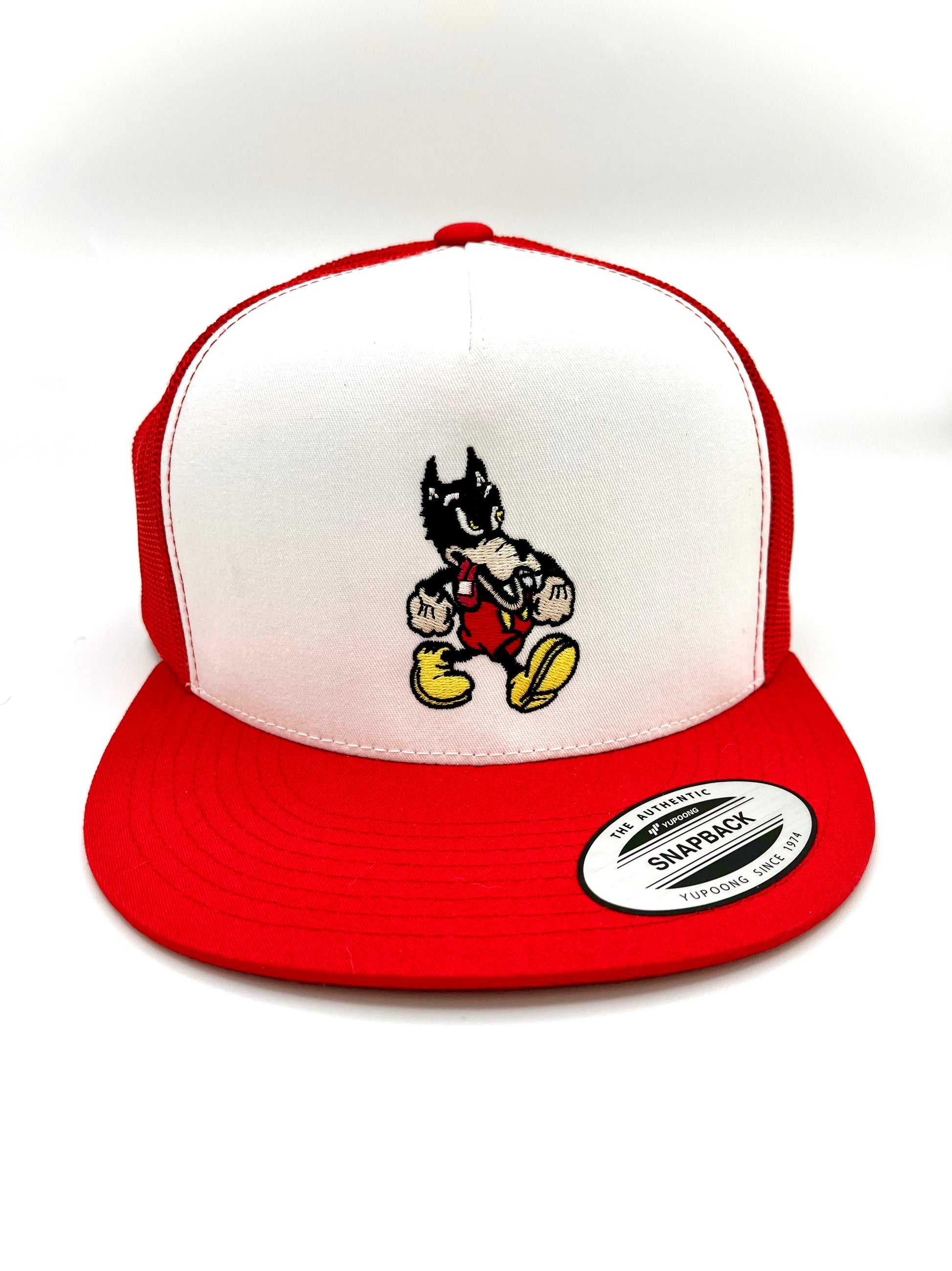 marching wolf red yupong trucker hat